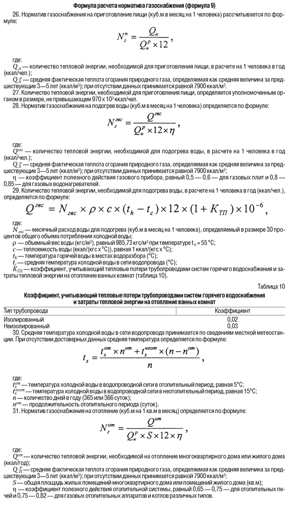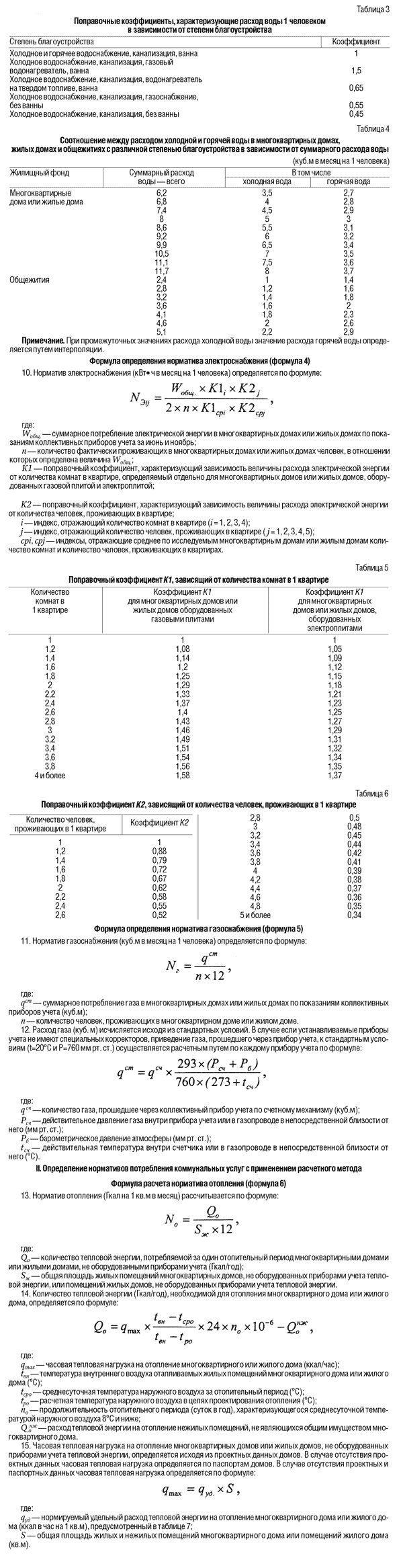 Формулы, используемые для определения нормативов потребления комунальных услуг