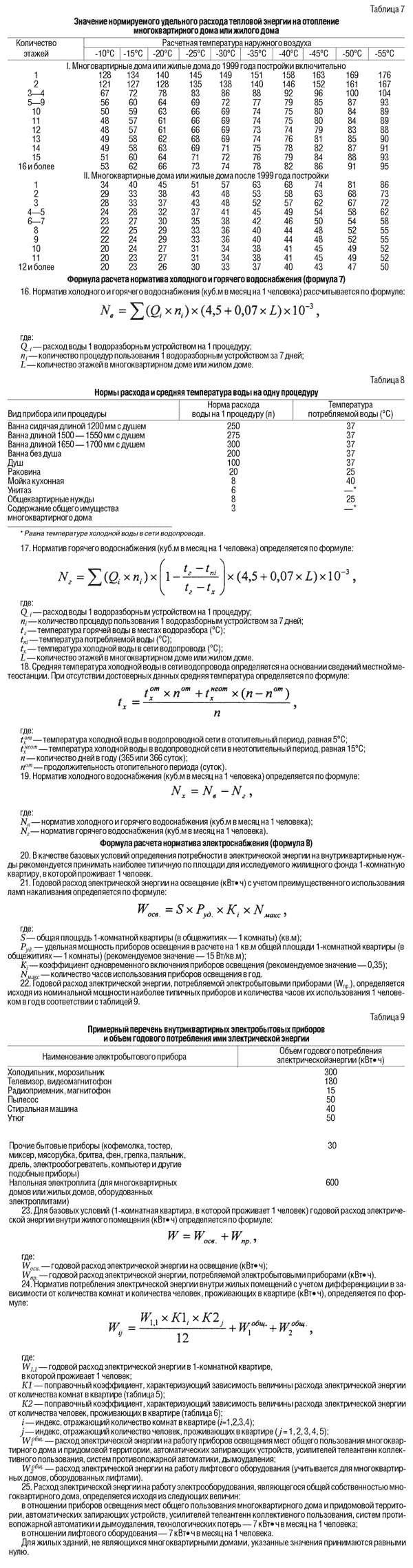 VI. Определение нормативов потребления коммунальных услуг с применением расчетного метода